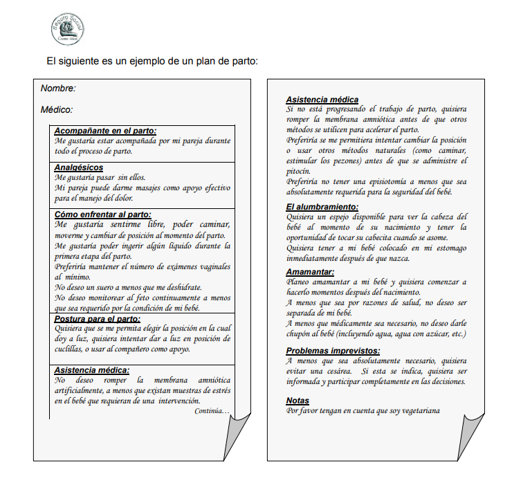 Para que no haya confusión cuando empieza el parto, es importante de discutir sus preocupaciones y deseos con el personal de salud que atenderá su parto lo más antemano de la fecha posible. Es especialmente importante para las primerizas; y ellas quienes han tenido parto por cesárea anteriormente – y no desean tener un parto por cesárea programada con este embarazo.